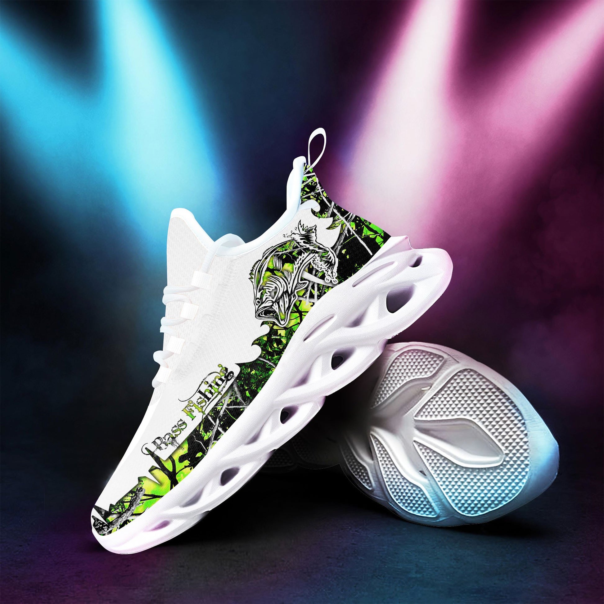 Green Largemouth Bass Fishing Muddy Camo Clunky Sneaker Shoes